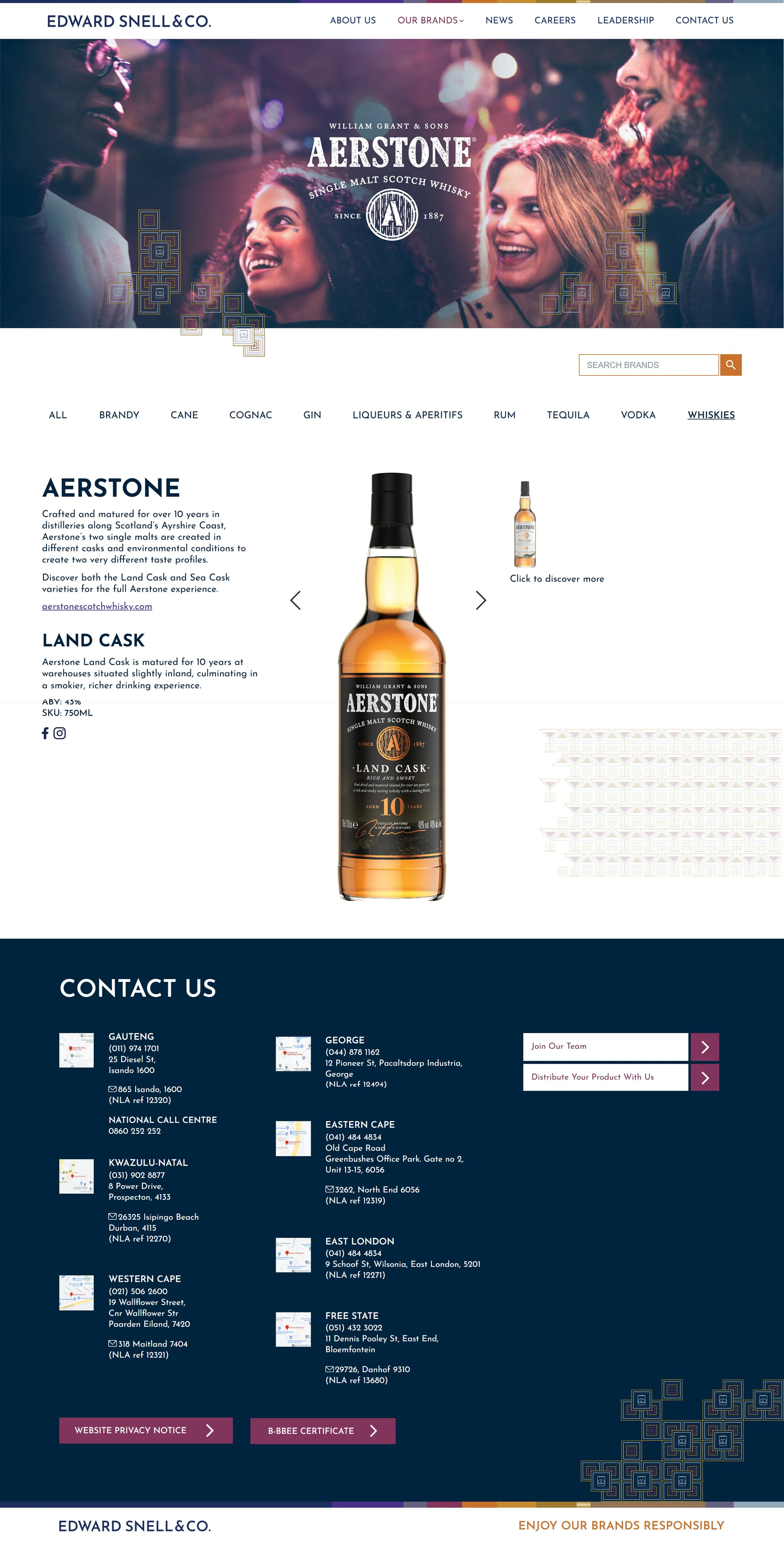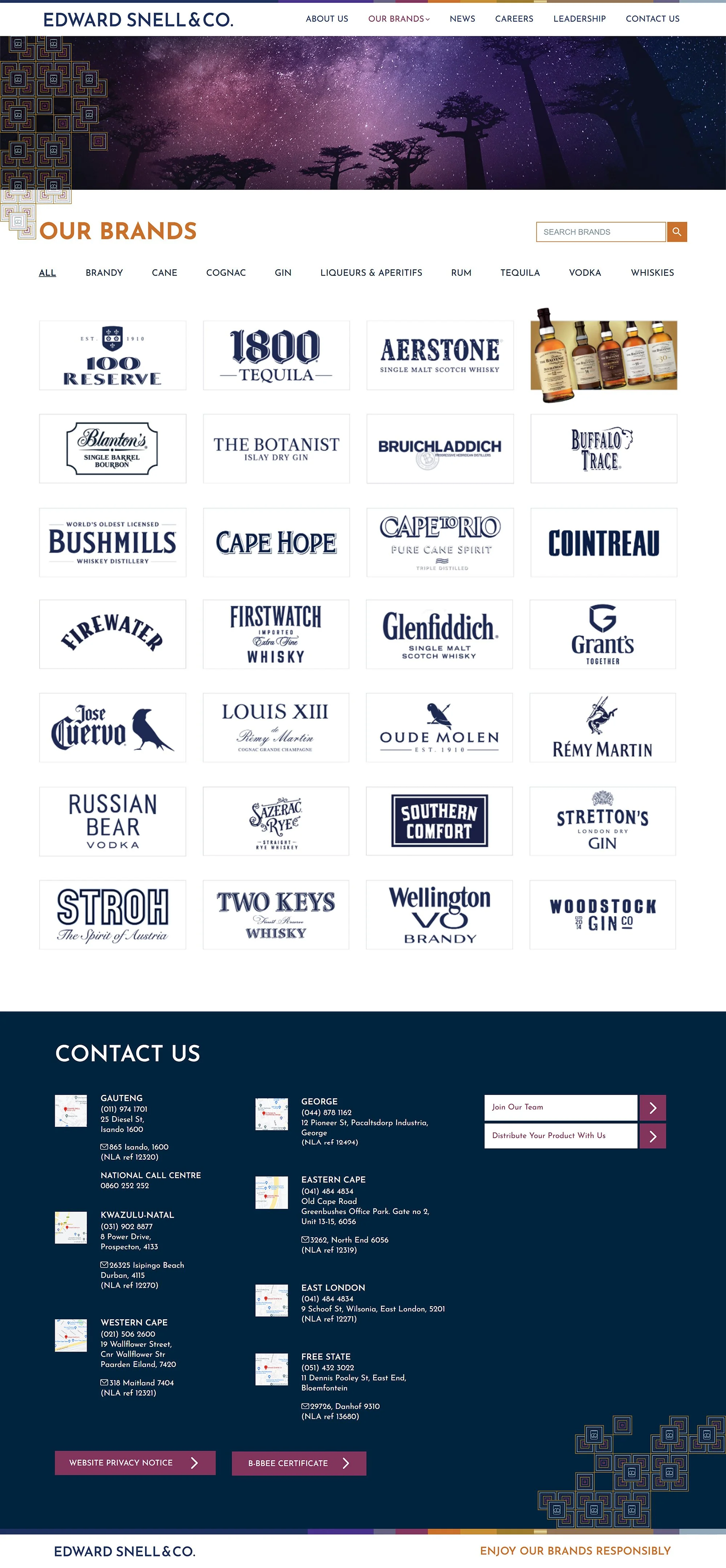 The home page was designed to establish a sense of the company’s rich history in the industry and to the long-term commitment as a partner to the brands they service. The brands are prominently featured high up on the page with beautiful imagery to show Edward Snell’s pride in their brands, and making quick and easy access to the full portfolio of brands right away.